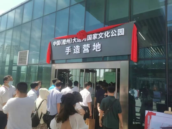 中国(滕州)大运河国家文化公园手造营地由市文旅局、微山湖湿地集团有限公司联合建造,位于微山湖红荷湿地游客服务中心,总面积近600平米。营地馆内分设手造产品展销、非遗技艺展演、民俗文化体验等区域。展销区将集中对入选“山东手造 优选100”的产品、我市及周边地市优秀手造产品、代表性非遗文创旅游商品进行展销,汇集“烧制锻造类、织造印染类、雕刻工艺类、文房四宝类、美术绘制类”等各大类500余种近万件商品。