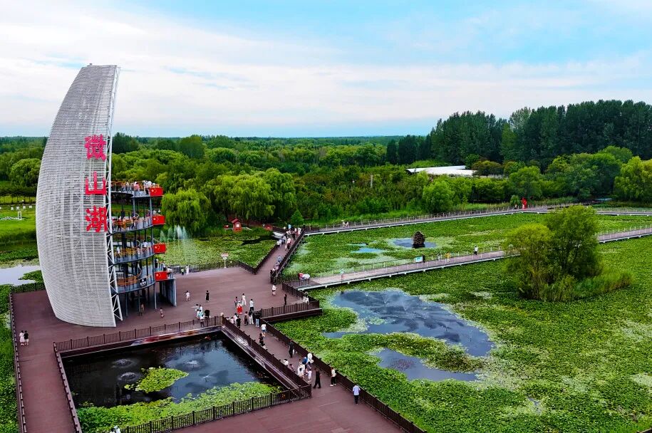 双节狂欢正当时!滕州微山湖红荷湿地化身金秋盛宴,人潮如织笑满园!